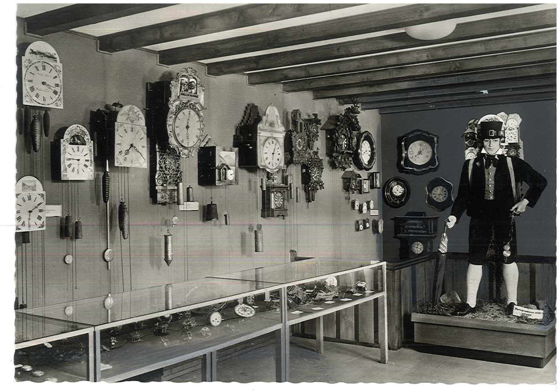 Künstlerische Ausgestaltung der Gewerbehalle mit „Schnitzersepp“-Originalwerken / Heimatkunst / Ständige Ausstellung von mustergültig ausgestatteten Uhren: Musik-, Kuckuck-, Wachtel-, Schotten-, Miniatur-, Jahresuhren und Hausuhren / Schnitzereien aller Art / Majoliken / Schwarzwälder Lackartikel / Spahn- und Strohkörbe / Großes Orchestrion mit elektrischem Betrieb / Reliefkarte der Schwarzwaldbahn / Historische Uhrensammlung / Puppen in Trachten vom Schwarzwald / Alt-Schwarzwälder Bauernstube mit Uhrmacherwerkstätte Quelle: Der Wasserfall, 10. September 1927